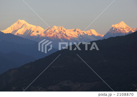 インド国シッキム州ガントク市から望む日の出時のカンチェンジュンガ