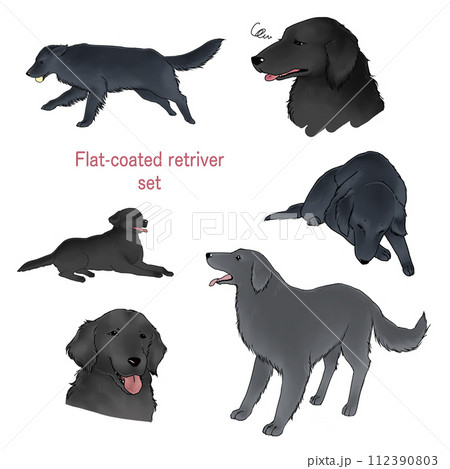 手描きブラック毛色のフラットコーテッドレトリバーセット