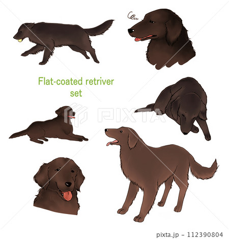 手描きレバー毛色のフラットコーテッドレトリバーセット