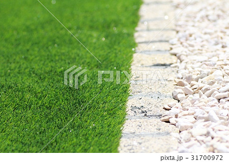 人工芝とピンコロ石と化粧砂利のエクステリア 庭づくり