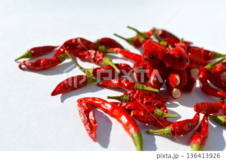 白背景に切り抜かれた赤いキノコのミニチュアオブジェ