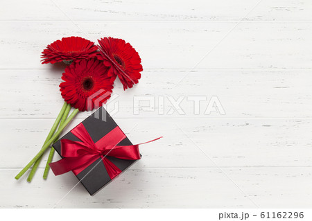 Valentines day gift box and gerbera bouquet