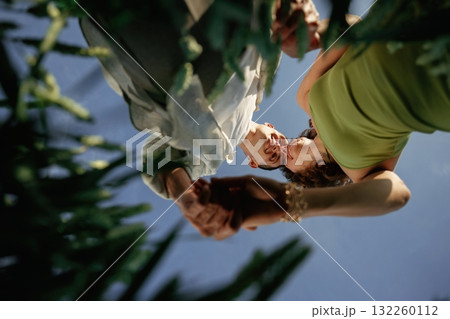 Woman says follow me and holds hand of flying man who wants to be always with girlfriend