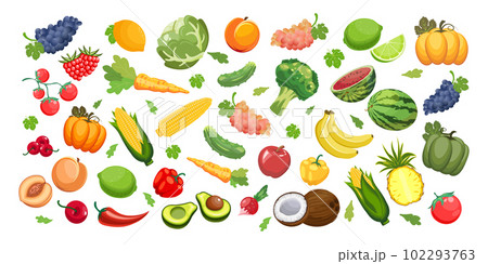 Big set of fruits and vegetables. Food, agriculture illustration, vector