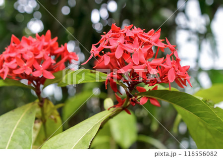 イクソラ、サマーフレッシュの紅色花【山丹花】