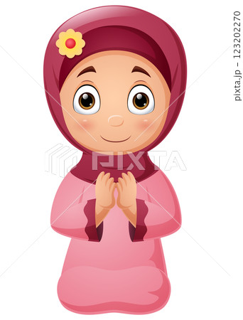 Cartoon muslim girl praying on white background