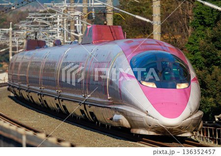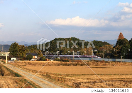 稲刈り後の田んぼの中を走る新幹線 九州路