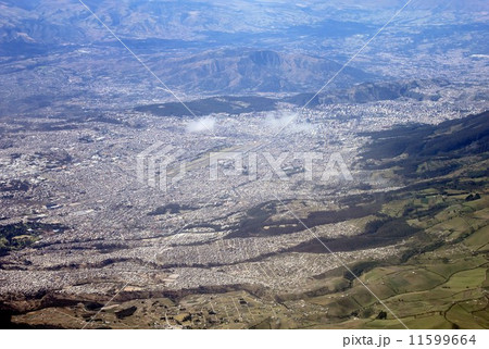 南米アンデスの天空都市、エクアドルの首都キト市街を上空から見る