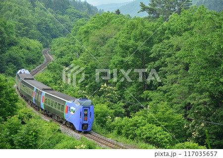 新緑の石北本線を駆ける特急オホーツク キハ283系 キハ283 特急オホーツク