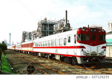 海外譲渡に向けて京浜工業地帯で停車するキハ58系