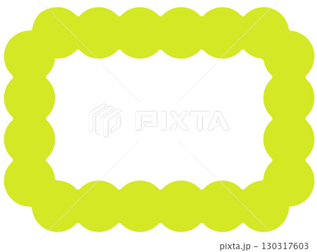 もこもこフレーム グリーン 黄緑色の丸型フレーム|かわいい波型ふち枠の背景素材