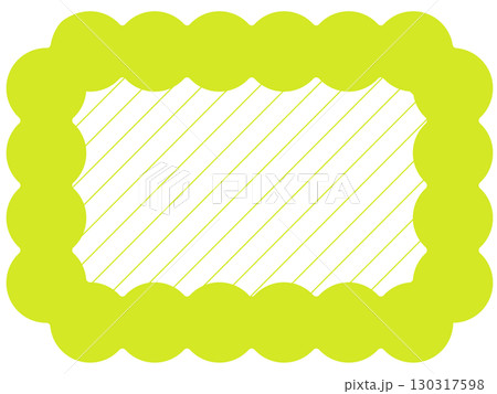 もこもこフレームと全面ストライプ グリーン 黄緑の丸型フレーム|斜めストライプ入りのかわいい枠素材