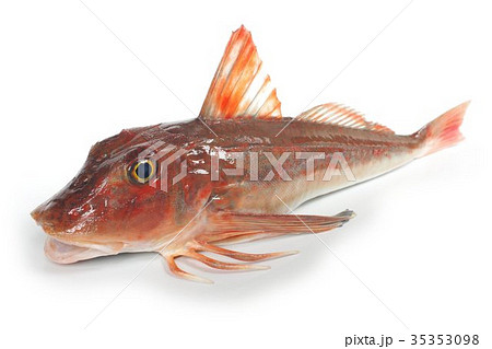 ホウボウ 全景横 鰭閉じ 胸びれが発達した脚で海底を歩く魚 白身の高級魚