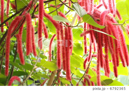 ふさふさした赤い植物 キャットテール ベニヒモノキ
