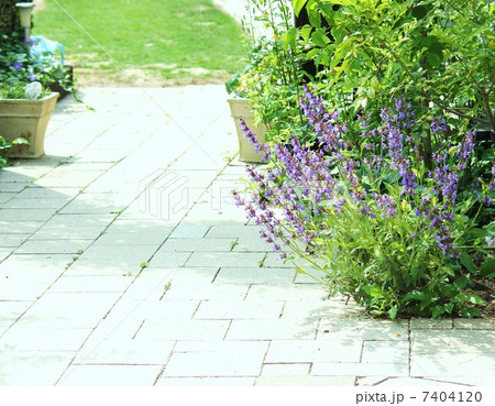 花壇に植えられたハーブ類:ブルー・キャットミント