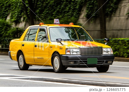 のりもの斜め前から見たタイプ違いのタクシーキャブ