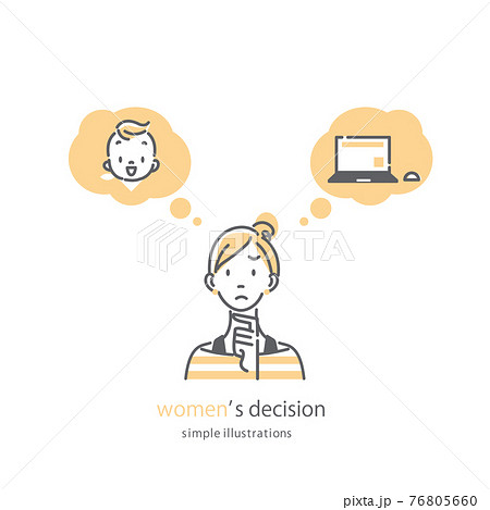 出産かキャリアの選択を考える女性 シンプルでおしゃれな線画イラスト