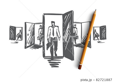 Door, opportunity, job, business, career concept. Hand drawn isolated vector.