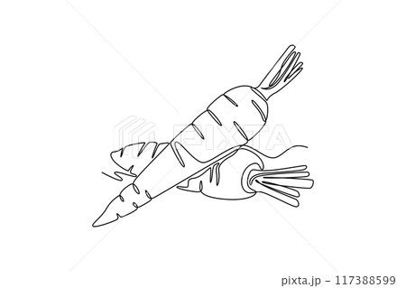 Single continuous line drawing whole healthy organic carrots heap for farm logo identity. Fresh biennial plant concept for root vegetable icon. Dynamic one line draw graphic design vector illustration