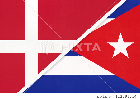 Denmark and Cuba, symbol of country. Danish vs Cuban national flags.