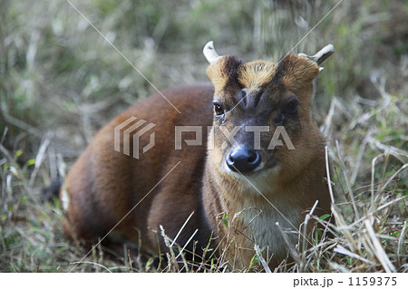 草むらに座るキョンのメス