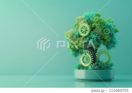 Blue sky and cloud with meadow tree. Plain landscape background for summer poster. Generate AI
