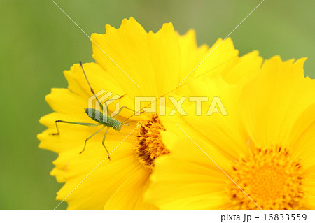 オオキンケイギクとツユムシの幼虫