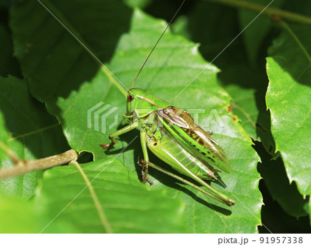 草むらにいるオスのキリギリス