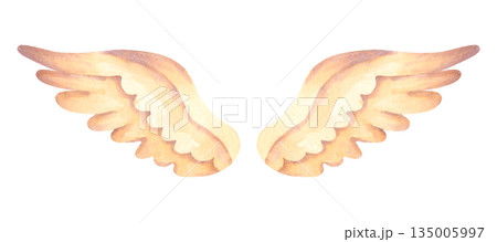 Watercolor illustration of a pair of angel wings and a unicorn. Hand drawn isolated art. For religious, spiritual, memorial, childrens designs, invitations, symbolic and memorial projects