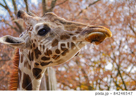 動物園の風景 アミメキリンの顔 北海道旭川市