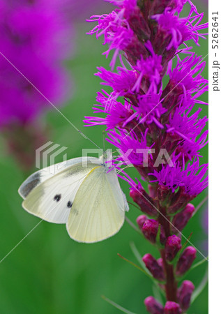 リアトリスとモンシロチョウ