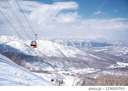 ウィンターシーズンのキロロスノーワールドのゴンドラとゲレンデ