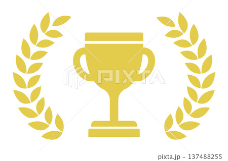トロフィーと月桂樹 黄色 ゴールド