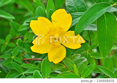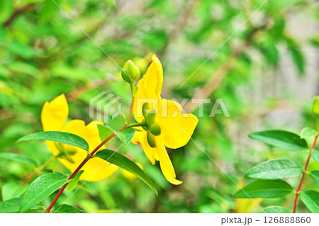 黄色いギンバイカの(ヒペリカム)の花(夏、六月)