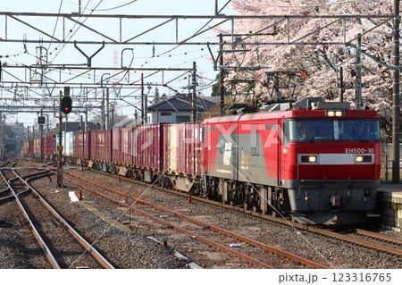 春の宇都宮線を行く貨物列車(EH500形牽引)