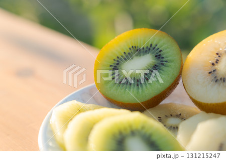 ゴールドキウイフルーツとグリーンキウイフルーツ カットしたキウイフルーツ エイジングケアフルーツ