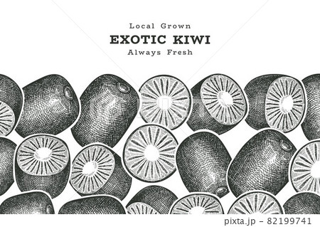 Hand drawn sketch style kiwi banner. Organic fresh fruit vector illustration. Retro kiwi fruit design template