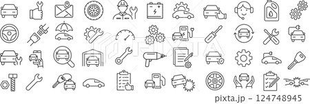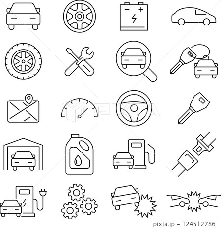 ベクターでモノクロのカーサービスに関する線画アイコンセット