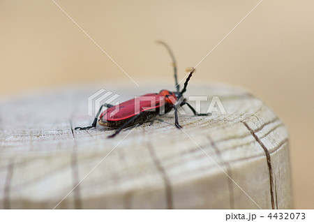 紅天牛ベニカミキリです。少し早く出てきすぎました。寒いです。