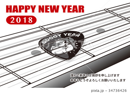 2018年賀状_ブルドッグのギターピック_添え書きスペース空き_ハガキ横
