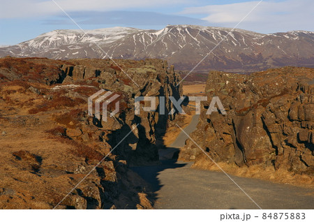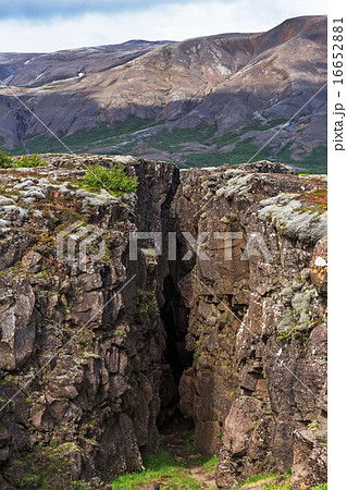 北欧の島国アイスランド ギャオと呼ばれる地球の割れ目がある世界遺産シンクヴェトリル国立公園の景色