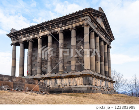 ancient hellenistic Garni Temple Armenia in winter