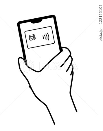 スマホでクレジットカードのタッチ決済を行うイラスト キャッシュレス決済