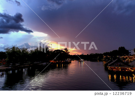 鉄橋から眺めるクウェー川の夕陽、タイ