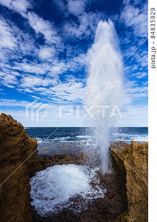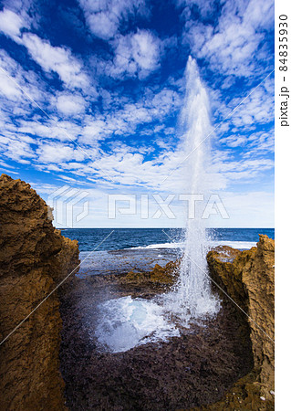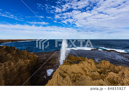 オーストラリア 西オーストラリア州のカナーボン近郊の水を噴き出してるクオバ・ブローホール