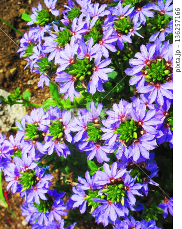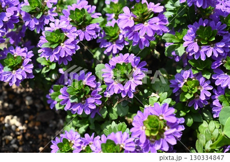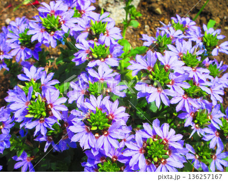 満開のブルーファンフラワー(スエヒロソウ)の風景
