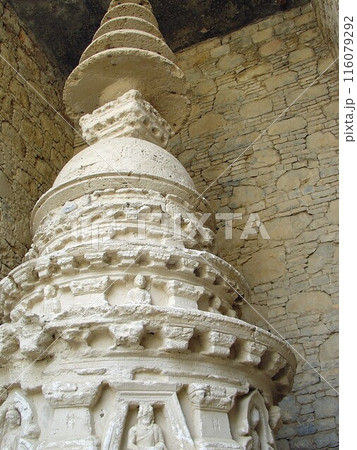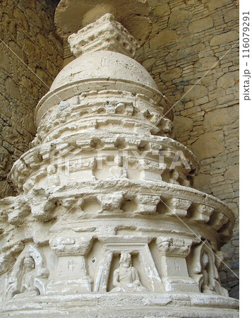 パキスタン北部の古代都市タキシラ遺跡に残るモーラモーラドゥ僧院跡にある小堂内の奉献仏塔(2007年)