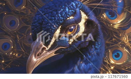 色鮮やかな目玉模様飾られた精巧な羽根インドクジャク2