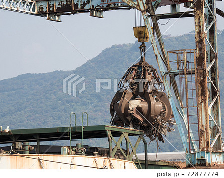 【産業】巨大なクレーンでスクラップを掴む様子 ごみ