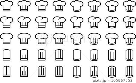 モノクロのコック帽のベクターイラストセット